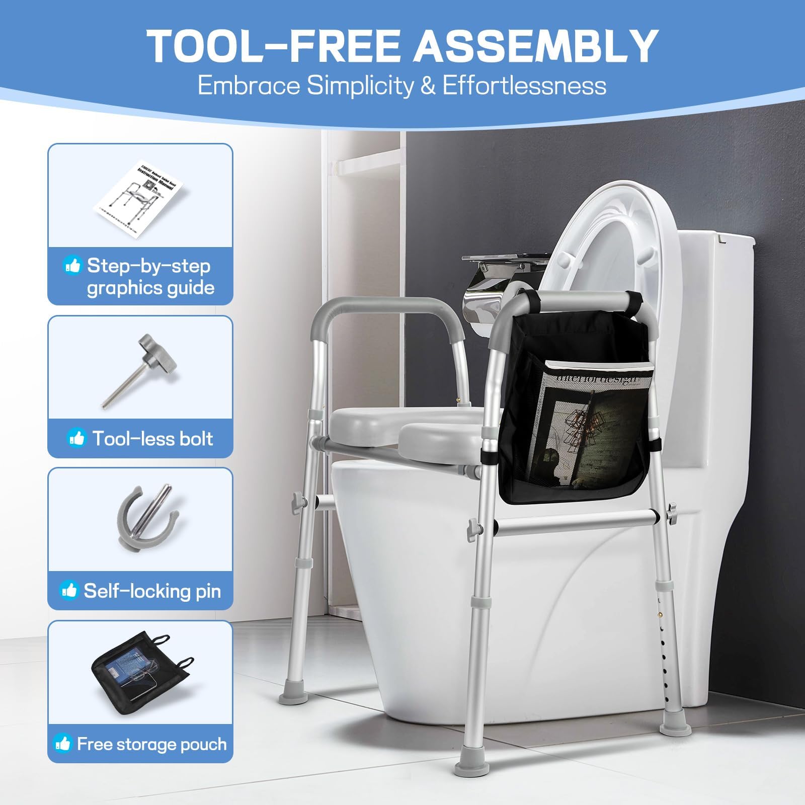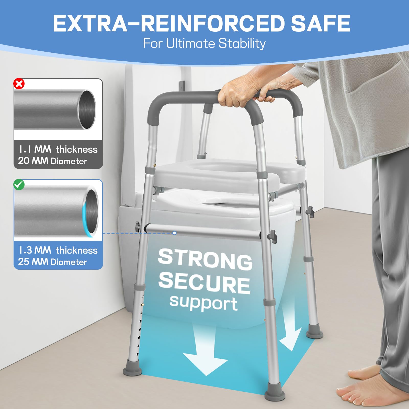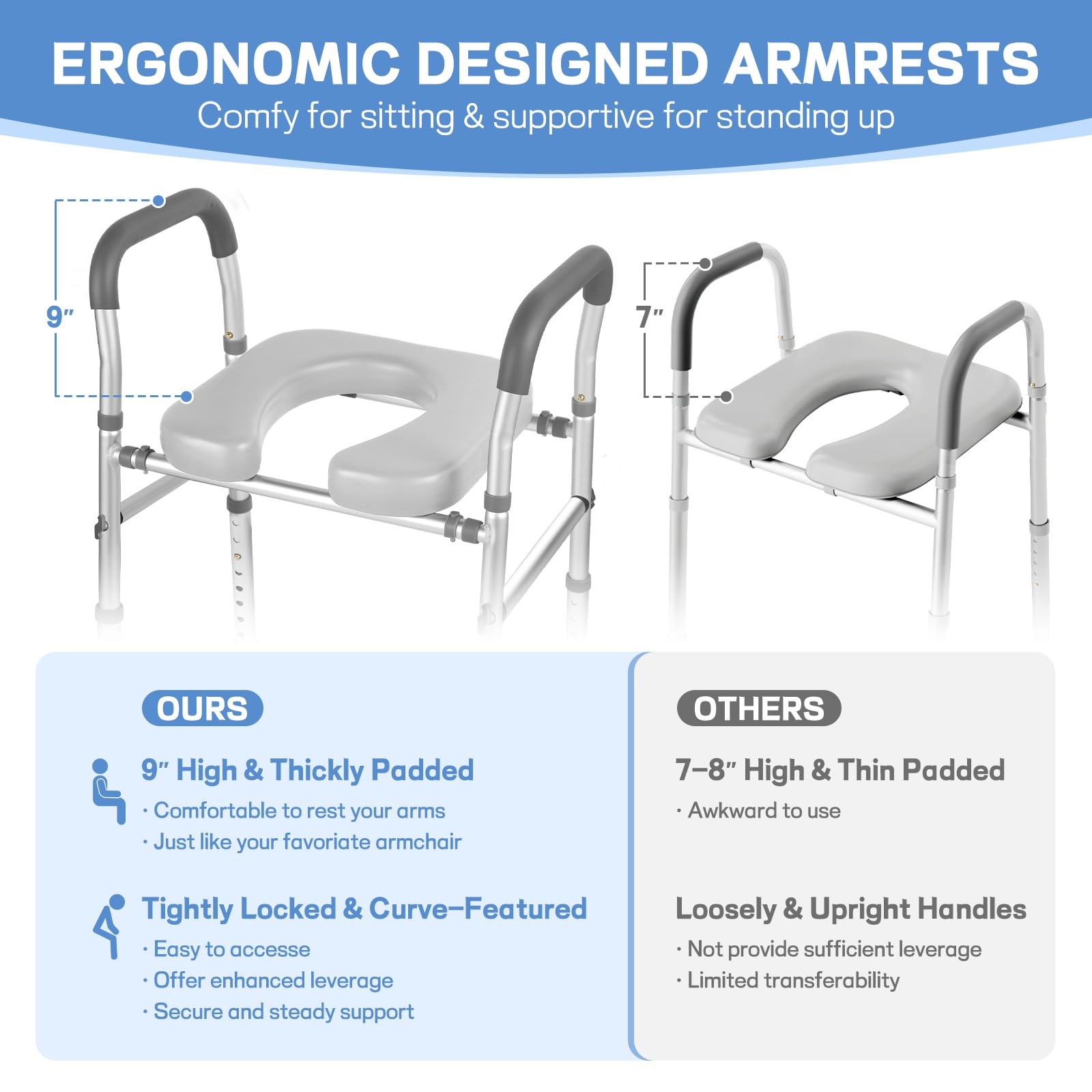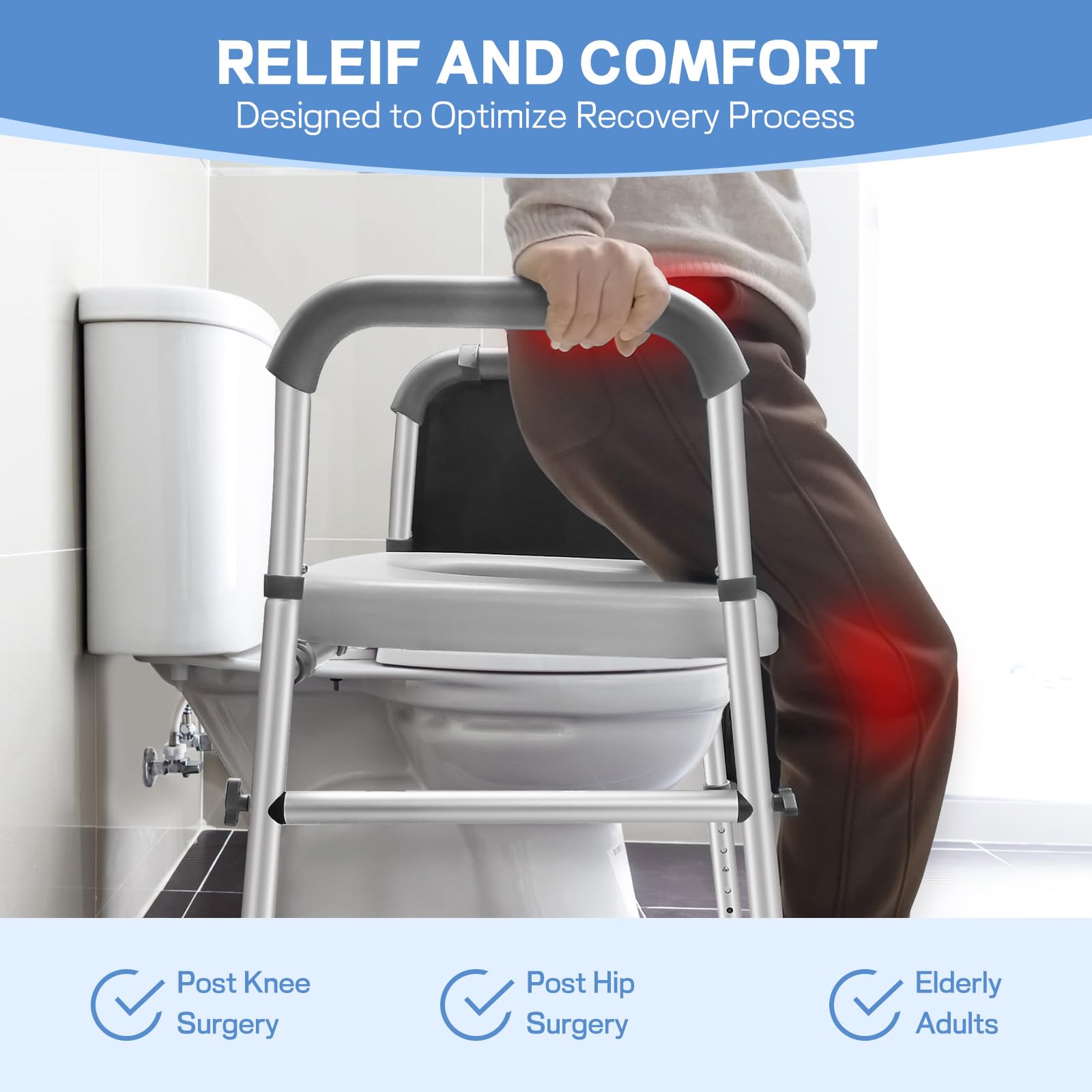 Enhanced Independence & Privacy: The lifted toilet seat with soft, non-slip handles promotes user independence and dignity. FREE 18-month replacement guarantee on accessories for added peace of mind.